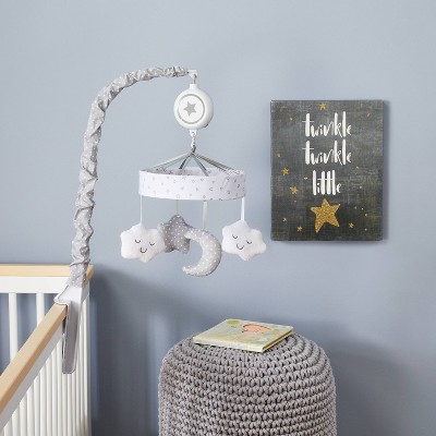 Our star and cloud-inspired mobile showers their sleep space in timeless and twinkling design.