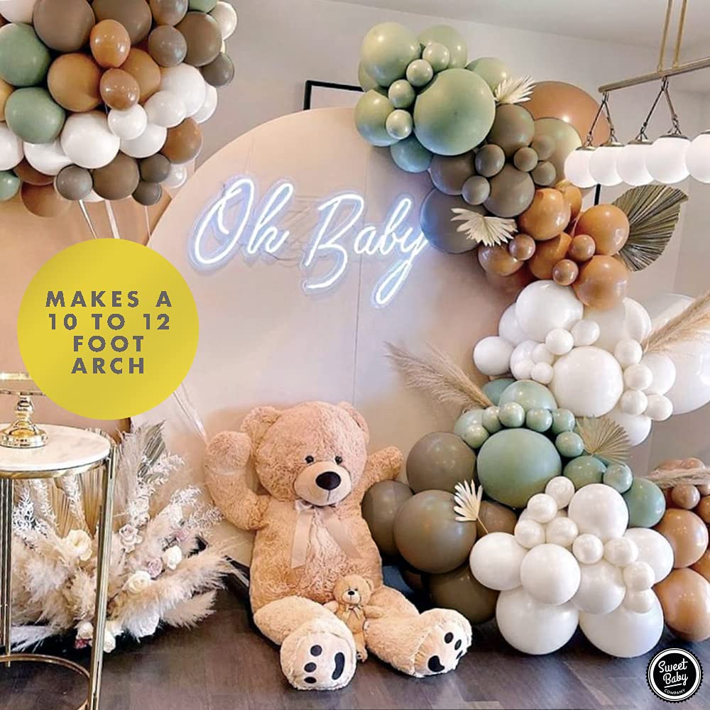 Jun 14 2013 - Ideas for a blue and brown themed baby shower. DIY Sage Green Balloon Garland Kit - 137pcs Matte Green Nude Neutral and Brown Balloons for Birthday Teddy Bear Baby Shower Wedding Boho Party Decorations Jungle Safari Woodland Party. Brown Pink Baby Shower.