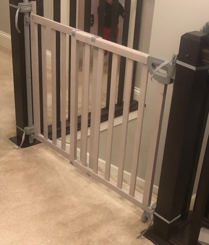 We had to get clever with attaching the latch end to a metal banister but I think we executed it well. Some of the most reviewed products in Baby Gates are the Summer Infant 33 in. Baby gate for irregular stair opening.