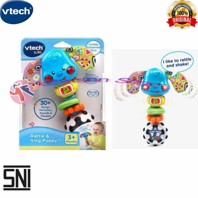 Shake the easy-to-grasp Rattle and Sing Puppy to hear the colorful beads rattle Rattling the puppy also causes the puppys cheeks to light up and introduces the concept of cause and effect The music button plays fun phrases sounds and songs. VTech Baby Rattle and Sing Puppy. VTech Baby Rattle and Sing Puppy. The puppys colorful crinkly ears also provide visual and tactile stimulation. Your little one will love holding this easy-to-grasp rattle and shaking it to see the puppys cheeks light up and hear the colorful beads rattle. VTech Baby Rattle and Sing PuppyGet This Product. Read honest and unbiased product reviews from our users. Press the music button to hear fun phrases sounds and songs. Your little one will love holding this easy-to-grasp rattle and shaking it to see the puppys cheeks light up and hear the colorful beads rattle.